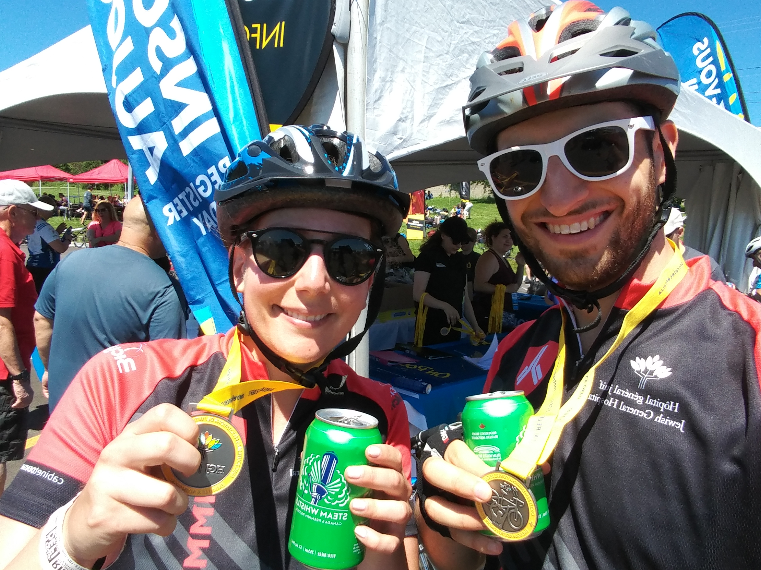 We got our medals, got a lot of high fives, and had another victory beer. Then some stretching and we were off to the bus to come back to Montreal.